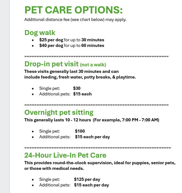 and Pet Sitting!